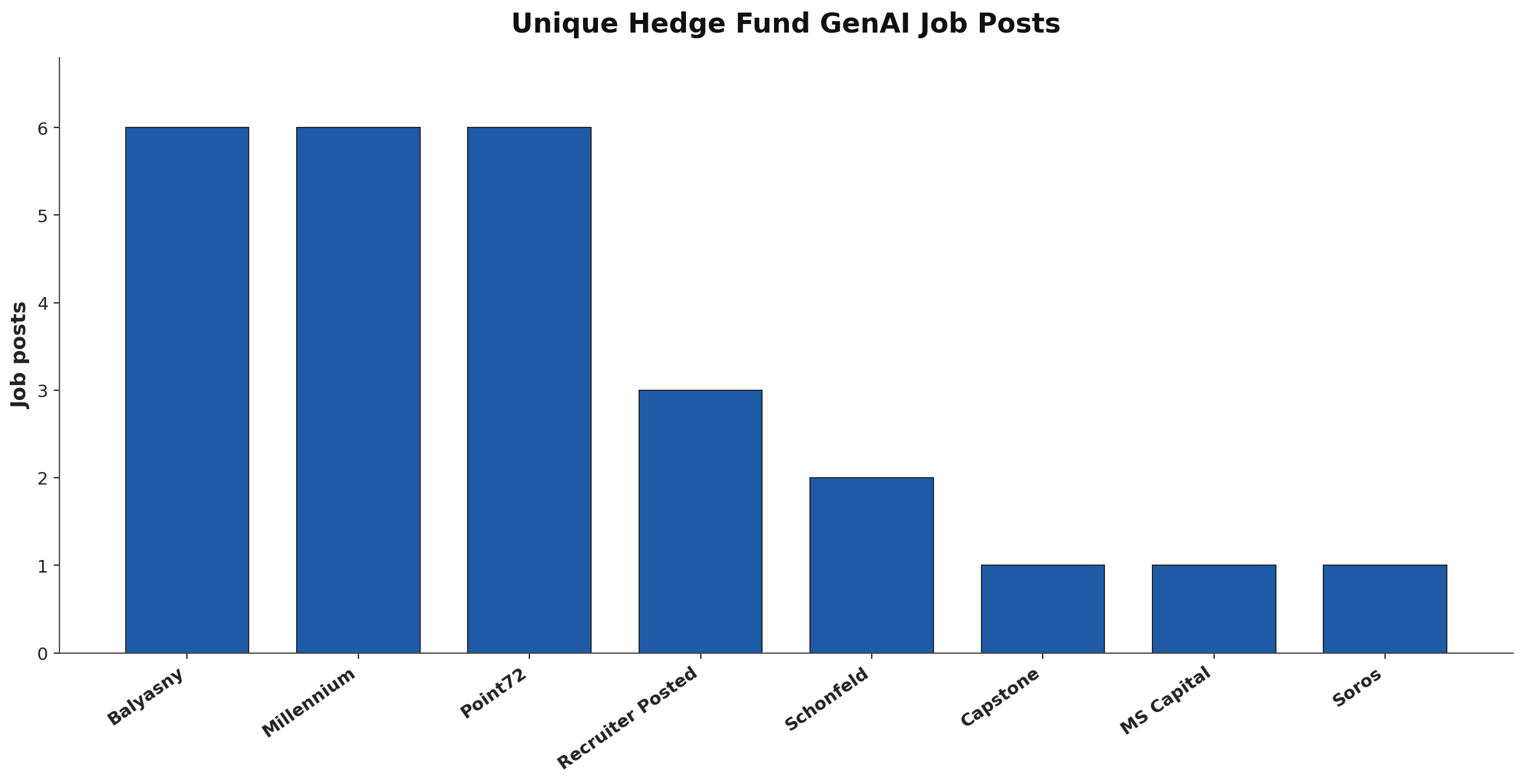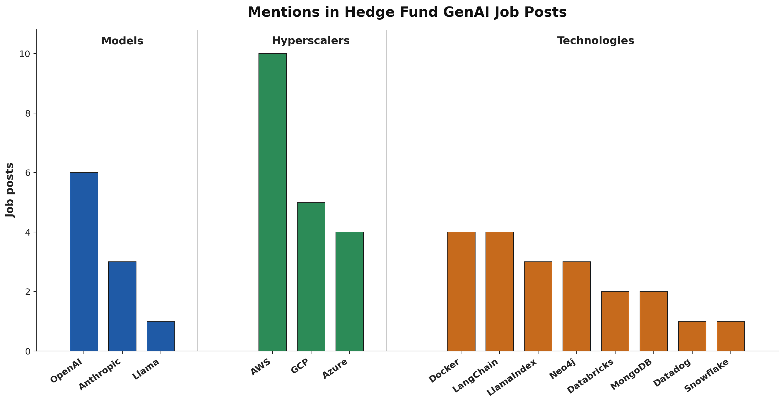 We’ve been collecting hedge fund GenAI job posts over the past month to identify creative LLM use cases, and thought we would analyze them to see what else we could learn: